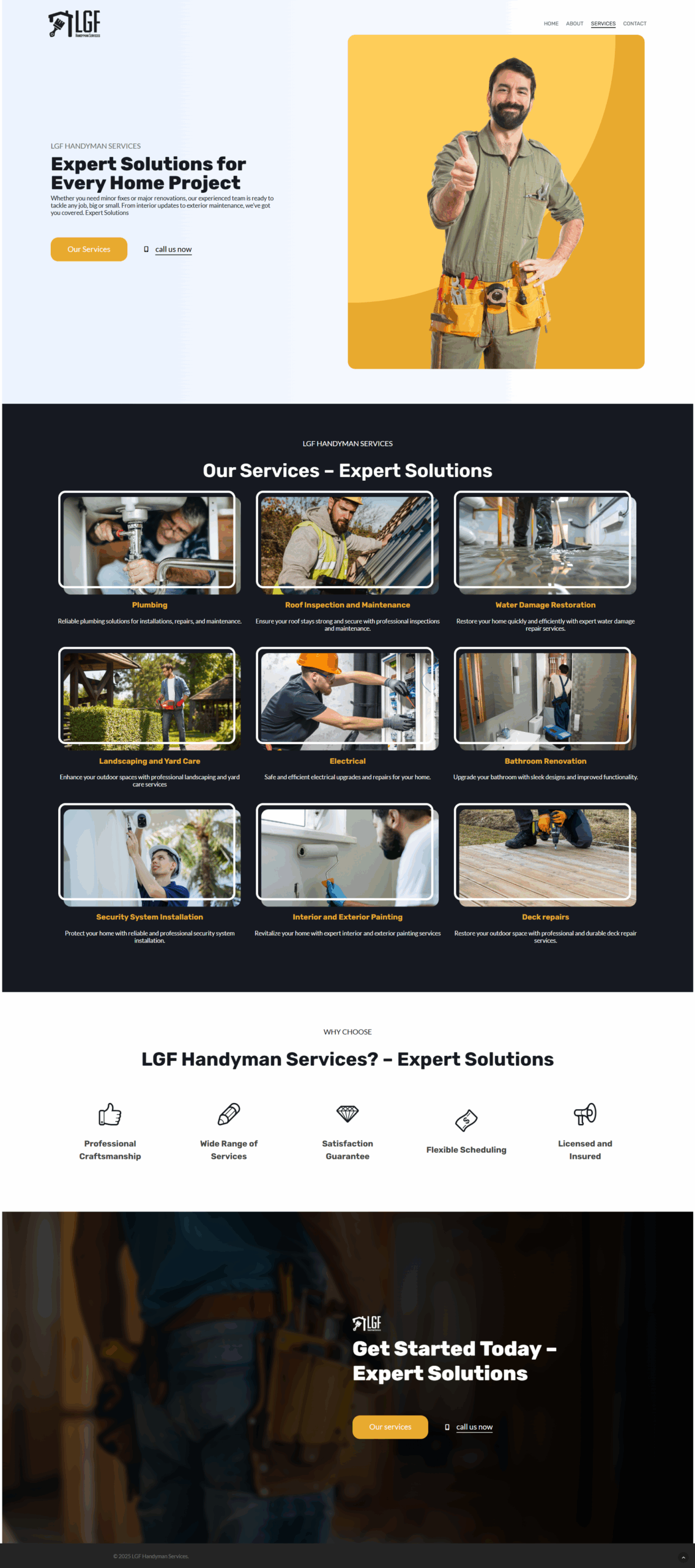 This project highlights the website design for LGF Handyman, a service dedicated to providing reliable and efficient home repairs. The design focuses on clarity, accessibility, and trust—making it easy for customers to explore services, request help, and connect with a dependable handyman solution.